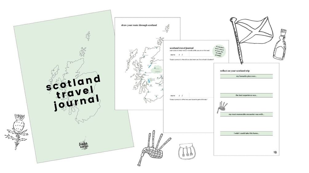 This guided travel journal lets you track your experiences in Scotland. There is space to keep note of your most important travel details, you get daily journalling prompts, a map to draw out your route and more.